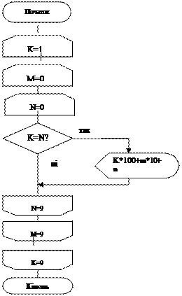 Приклад 6.Вивести всі трьохзначні числа у яких крайні цифри однакові.