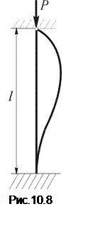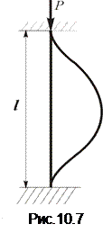 , де n – число півхвиль синусоїди за довжиною зігнутого стержня (рис. 10.5). У випадку, що розглядається, тобто при шарнірному закріпленні кінців стержня, на його довжині укладається тільки одна півхвиля синусоїди (n=1).