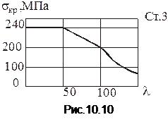 , де sкр визначається, якщо воно в межах пропорційності, за формулою Ейлера, якщо воно вище sпц – наприклад, за формулою Ясинського.