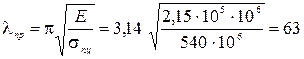 Для використання формули Ейлера визначимо граничну гнучкість і гнучкість стояка. Гранична гнучкість матеріалу стояка: