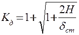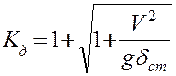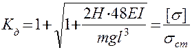 , де V – швидкість падаючого вантажу в момент початку удару, тоді коефіцієнт динамічності можна записати: