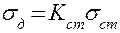 Враховуючи лінійний зв'язок між напруженнями та деформаціями, а також припускаючи, що модулі пружності при статичній і ударній дії навантаження однакові, можна записати: