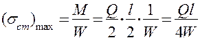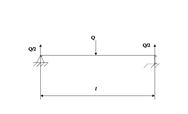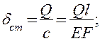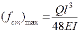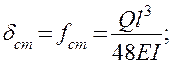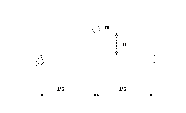 - статичний прогин у місті удару, який залежить від схеми навантаження та умов закріплення балки. Якщо балка шарнірно оперта і удар по центру прольоту, тоді: