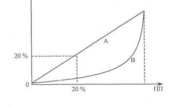 Очевидно, що чим більше крива Лоренца нахиляється донизу, тобто чим більше вона ввігнута, тим значнішою є нерівномірність розподілу доходів і податкових зобов'язань, одним із факторів якого є оподаткування.
