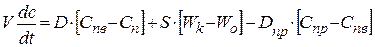 Загальне рівняння матеріального балансу домішок для стаціонарних умов роботи установки записується виходячи з наступного. Зміна кількості домішок у воді в часі дорівнює