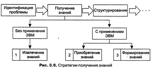 Таким образом, можно выделить три основные стратегии проведения стадии получения знаний при разработке ЭС (рис. 3.6).