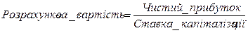 Яскравим прикладом такої оцінки може служити методика прямої капіталізації, суть якої концентровано виражається формулою: