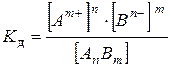 где [Am+], [Bn–] и [AnBm] – равновесные концентрации ионов Аm+ и Вn– и недиссоциированных молекул AnBm,соответственно.