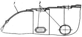 1 – газовый поток; 2 – отверстия для подвода и отвода охлаждающего воздуха