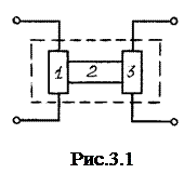Оптоэлектронные приборы излучают и преобразуют излучение в инфракрасной, видимой или ультрафиолетовой областях спектра. Основным компонентом оптоэлектроники является пара с фотонной связью, называемая оптроном. Простейший оптрон можно представить четырехполюсником, состоящим из трех элементов: источник света - 1, световод - 2 и приемник света - 3 (рис.3.1).