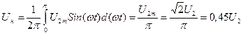 В результате такой работы вентиля ток через нагрузку будет протекать в течение только одного полупериода переменного напряжения u2 и вызывать на нагрузке периодическое несинусоидальное напряжение uн, среднее значение которого может быть определено