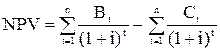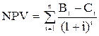 NPV дорівнює різниці між майбутньою вартістю потоку очікуваних вигід і поточною вартістю нинішніх і наступних витрат проекту протягом усього його циклу.