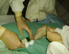 - Ребенок находится в положении на животе с роликом под эпигастрием (при Вх почечного трансплантата – на спине)