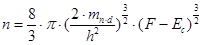 Таким образом, при расчете n в невырожденном полупроводнике n-типа зону проводимости представляют как набор Nc числа уровней с одинаковой энергией Ec.