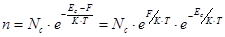 – концентрация зависит по экспоненте от T – признак невырожденности электронного газа.