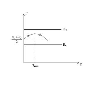 При T=0 К уровень Ферми лежит между уровнем ЕС и Еd и с повышением температуры уровень F будет подниматься к уровню ЕС, проходить через максимум при Т = Тmax и затем опускаться.