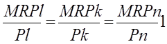 Для определения оптимальной комбинации ресурсов, максимизирующей прибыль, интерпретируется общее правило формирования спроса на отдельные виды ресурса.