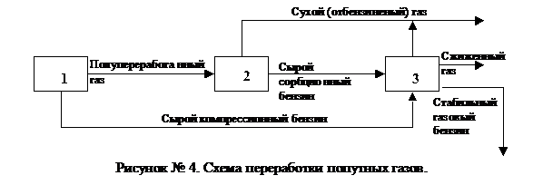 В отделении 2 происходит окончательное отбензинивание газа методом сорбции или глубокого охлаждения. Сухой газ направляется к потребителю, а сырой бензин поступает в 3 отделение (газофракционирующую установку) для окончательной переработки. В этом отделении получают узкие фракции.
