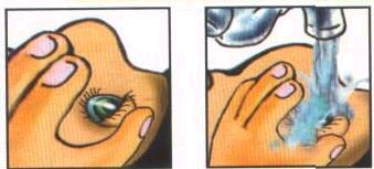 | НАКРЫТЬ ГЛАЗ ЧИСТОЙ САЛФЕТКОЙ (НОСОВЫМ ПЛАТКОМ) | РАЗДВИНУТЬ ОСТОРОЖНО ВЕКИ ПАЛЬЦАМИ И ПОДСТАВИТЬ ПОД СТРУЮ ХОЛОДНОЙ ВОДЫ | ||||
