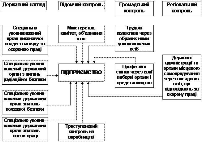 Рис.1- Загальна схема державного, відомчого та громадського контролю за охороною праці на Україні.