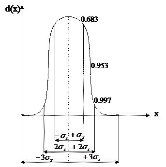 +σх, знаходиться 68,3% всіх спостережень; на ділянці, обмежений
