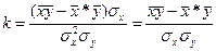 Отримане відношення служить для визначення вимірника тісноти зв'язку між змінними в разі їх лінійної залежності, і має назву коефіцієнта кореляції ry/х.