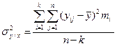 Загальна дисперсія σy2 досліджених даних від їх середнього значення встановлюється з урахуванням числа ступенів свободи