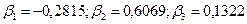 β1 = -0,5348 и β3 = 0,515. (3.117)