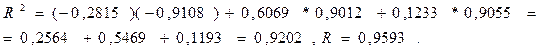 R2у, Х1 Х3 = -0,9108 (-0,5348) + 0,9055 * 0,515 = 0,9534; (3.118)