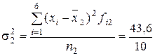 | Σ | n1=10 | n2=10 | N=20 | Σхi·fi1=138 | Σхi·fi2=178 | Σхi· mi =316 |