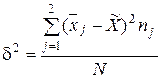 Вариацию между группами за счет признака-фактора, положенного в основу группировки, отражает межгрупповая дисперсия, которая исчисляется как средний квадрат отклонений групповой средней от общей средней: