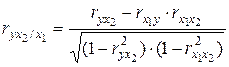 Частные коэффициенты корреляции характеризуют степень тесноты связи результативного признака и фактора, при элиминировании его взаимосвязи с остальными факторами, включенными в анализ. Расчет частных коэффициентов корреляции в случае двухфакторной регрессии (в первом случае исключено влияние факторного признака х2, во втором – х1):