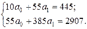 Решение. Составим систему нормальных уравнений МНК: