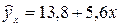 = 12,508 + 2,672·х1 – 0,082·х2.