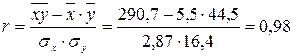 Значение коэффициента корреляции свидетельствует о сильной прямой связи между рассматриваемыми признаками.