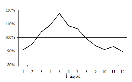Для наглядного изображения сезонной волны индексы сезонности изображают в виде графика.