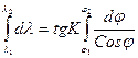 l2 - l1 = tg K [ln tg(p/4+j2/2) – ln tg (p/4 + j1/2)] (1.15)