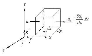 Поскольку рассматриваемый элементарный объем неподвижен, изменение скорости не зависит от времени. В направлении оси х через левую грань втечет за 1 с жидкость массой
