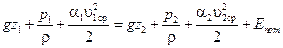 Обозначим энергию, затрачиваемую на преодоление сил сопротивления Eпот. Eпот – это та часть механической энергии, которая, вследствие вязкости, переходит в тепловую энергию. Другими словами можно сказать, что Eпот – это часть энергии, которая израсходована на преодоление гидравлических сопротивлений.