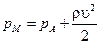 . Разность давления Δp зависит от динамического давления на входе в трубку Пито–Прандтля, что следует из уравнения Бернулли для точек А и М: