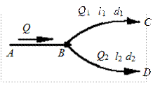 между точками А и В. Общий расход, диаметры и длины труб предполагаются известными.