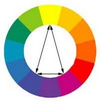 Гармоничное 3-цветное сочетание цветов может быть представлено цветами, которые определяются при вписывании треугольника в цветовой круг (равносторониий – желтый, красный и синий; равнобедренный – желтый, красно-фиолетовый и сине-фиолетовый).