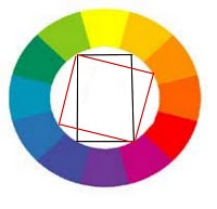 Гармоничное 4-цветное сочетание – при вписывании в цветовой круг квадрата (желто-зеленый, оранжевый, красно-фиолетовый, синий) или прямоугольника (желто-зеленый, желто-оранжевый, красно-фиолетовый и сине-фиолетовый).