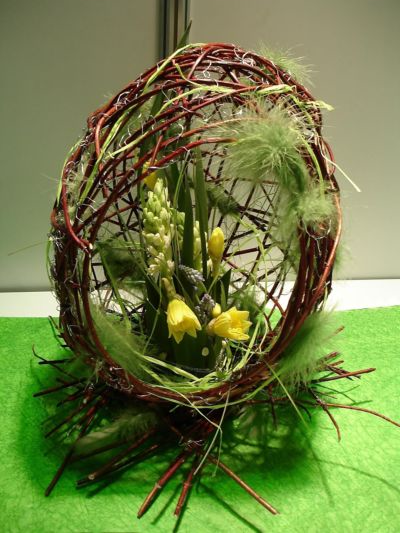 На Пасху в нашей стране мало украшений, хотя в последнее время стали оформлять церкви цветами и иногда домашние столы. Коммерческая флористика продвигает пасхальные работы, но пока они не очень распространены.