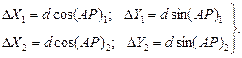 По расстоянию AP = d и дирекционному углу (АР) находят, приращения координат