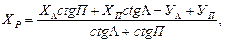 В целях контроля находят угол γ=1800– b1 – b2, а затем по координатам пункта В (левый) и координатам пункта Р (правый) по формулам (14) и (15) вычисляют координаты пункта А, которые должны совпадать с заданными.