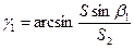 Величину угла засечки (для первого решения) можно найти из выражения