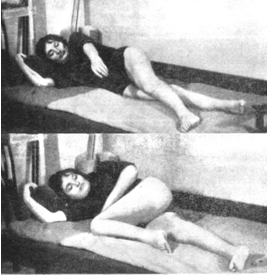 Фото 16. Больная со спинальной параплегией, обученная сгибанию и разгибанию голени при помощи цепных миотатических синкинезий [152]