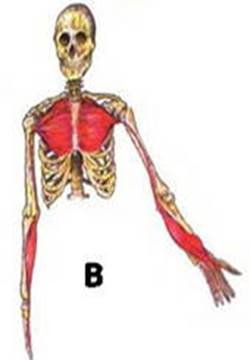 Достаточно взглянуть в учебник анатомии, чтобы убедиться в том, что субстраты для реализации цепных миотатических рефлексов существуют и у человека. Действительно, многие весьма крупные массивы скелетных мышц имеют одинаково направленную исчерченность рельефа. Нередко одна мышца как бы является продолжением другой. Эти цепочки мышц могут иметь диагональную или продольную ориентацию.