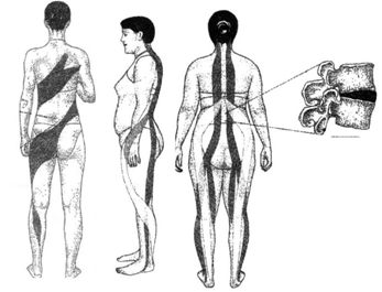 Современные вертеброневрологи – Л. А. Кадырова и Н.Н. Сак с соавт. [96, 95, 209, 208] предполагают, что в скелетной мускулатуре человека могут быть выделены своеобразные мышечные цепи, оплетающие конечности и туловище наподобие спиралей (рис. 31). Распределение рефлекторной мышечной патологии находится в прямой зависимости от этих спиралевидных кинематических цепей.